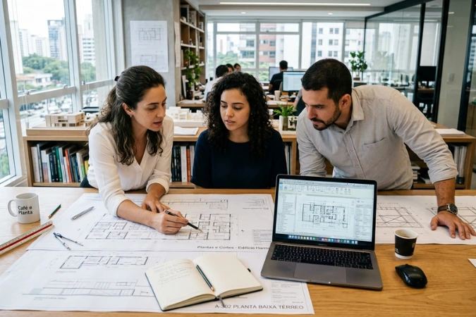 Além disso, processos bem definidos ajudam a equipe a revisar projetos com mais consistência. Dessa forma, pequenas falhas que poderiam gerar dúvidas na execução são identificadas ainda dentro do escritório.